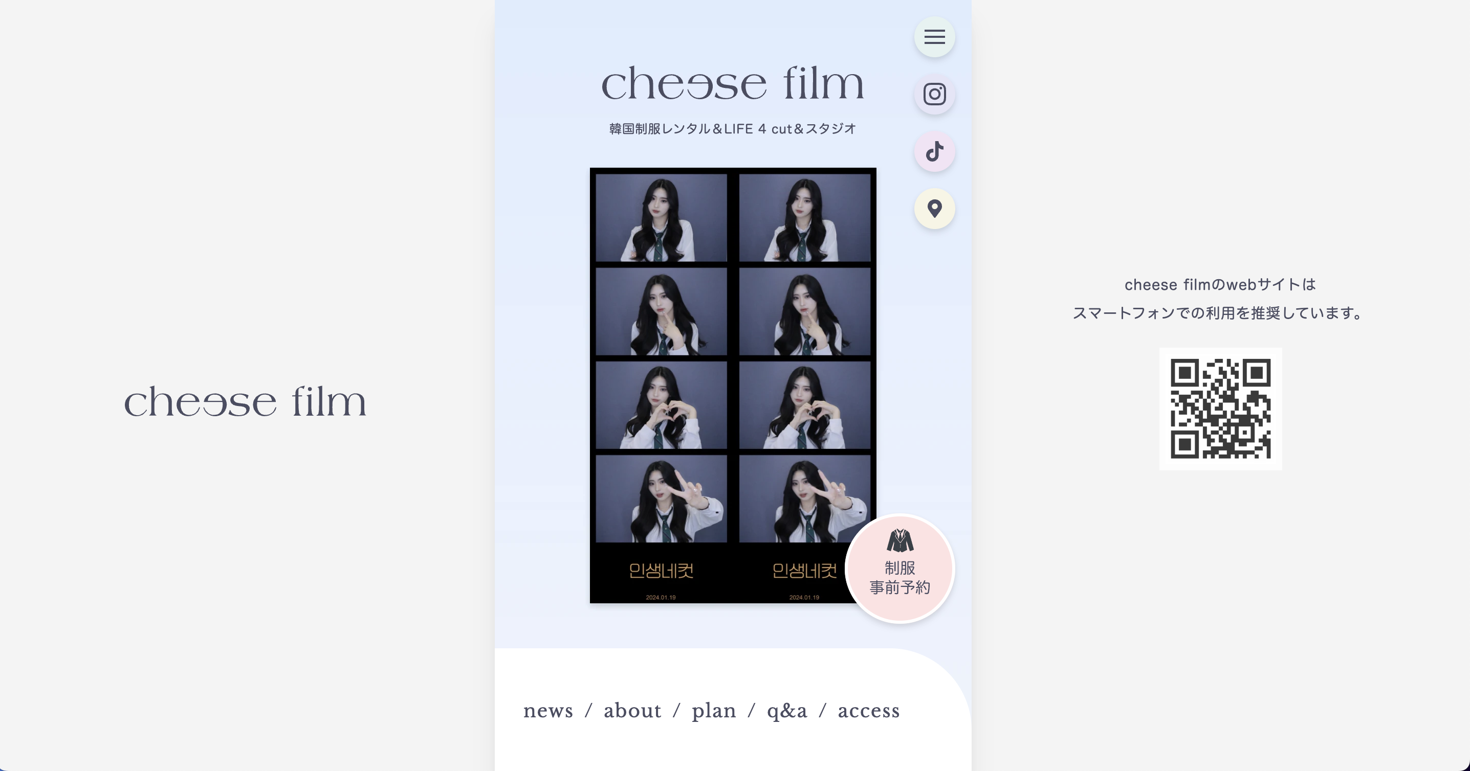 cheese film(チーズフィルム)は、名古屋にある制服レンタル店で、主に韓国制服やオシャレ制服を取り扱っています。